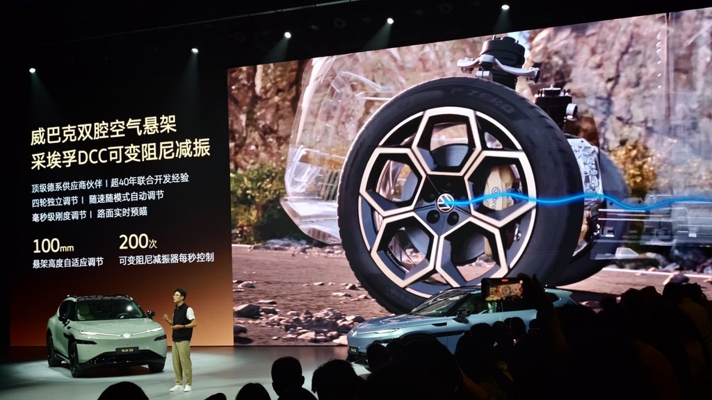 在电动化时代,ID.UNYX 与众08坚持认为“驾驶是智能的基础”。为此,新车在底盘硬件与调校上不惜成本。其采用了前双叉臂、后五连杆的悬架结构,并配备了德国威巴克双腔空气悬架与采埃孚DCC可变阻尼减震器,可实现高达100毫米的车身高度调节与每秒200次的阻尼调整。结合路面实时预瞄功能,系统能实现智能四轮独立调节与毫秒级干预。